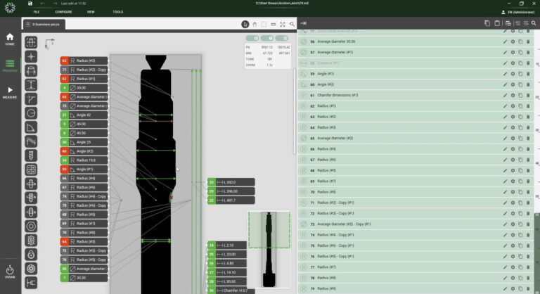 Le tout nouveau logiciel Dream a été conçu pour améliorer les temps de mesure et étendre encore le nombre de mesures possibles. Elle contient des outils spéciaux pour les mesures statiques et dynamiques et des instruments spécifiques pour les douilles filetées, les arbres à cames, les roues de turbine, etc.