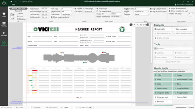 Le logiciel permet à l’opérateur d’imprimer ou d’exporter des rapports de mesure complets et personnalisés (dans tous les formats courants). Les résultats de mesure peuvent être facilement suivis